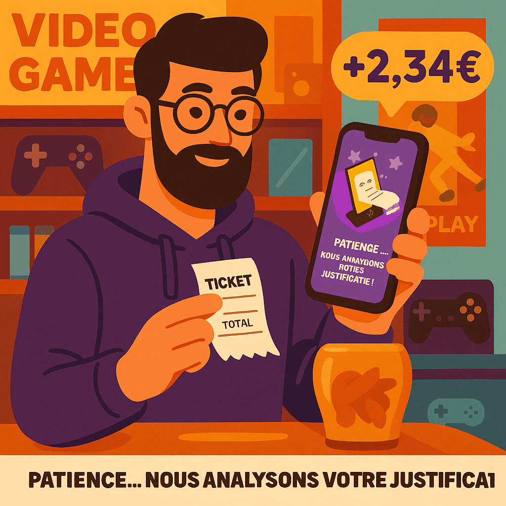 Le scan peut être effectué immédiatement ou quelques minutes plus tard. L’application lit automatiquement les informations clés : date, heure, montant, nom du commerce.
